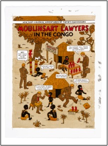 Anton Kannemeyer, Moulinsart Lawyers in the Congo, acrylic on paper, 2011.