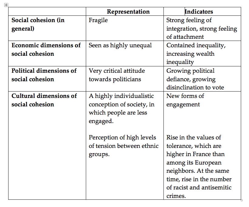 In a stimulating and well-informed essay, Sandra Hoibian refutes the idea that French society is becoming fragmented and suggests ways to measure a vague concept: social cohesion.