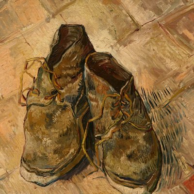 On pourrait bien objecter que le besoin originaire de se rapporter aux choses maintient la pensée dans le règne superficiel d’une utilité préoccupante, qui la renvoie d’un ustensile à l’autre, et ne lui offre en guise de répit qu’un divertissement frivole, la curiosité ; que la pensée ne retrouve son sérieux quand désirant originairement ce qui la convoque, à savoir l’origine authentique des choses, l’être même ; penser, c’est s’intéresser à l’être en se situant entre et parmi les êtres, dirait Heidegger. Mais si l’on relit un texte tel que L’Origine de l’œuvre d’art, on trouvera Heidegger pris au piège de son propre intérêt. On voit ici le produit, ou la chose utile, s’introduire entre la simple chose et l’œuvre d’art. La pensée de l’œuvre se tourne donc d’abord vers la sphère de l’utile, en se donnant l’exemple d’un produit singulier, une paire de souliers de paysan. À l’usage, c’est-à-dire aux pieds de la paysanne qui marche dans les champs, l’utilité du produit est directement mise en jeu mais n’apparaît pas comme telle : celle qui marche n’y pense pas. En revanche, les vieux souliers délacés que Van Gogh a peint plusieurs fois, en libérant le produit de son usage, révèle l’être même de l’utile. L’œuvre d’art, dans son inutilité même, dévoile ainsi la fiabilité du produit, sa disponibilité à l’usage, la relation au monde qu’il implique. Si les chaussures de la paysanne soutiennent sa relation avec la Terre qui est sous ses pieds, seule la toile de Van Gogh offre l’ouverture « de ce que le produit, la paire de souliers de paysan, est en vérité » [5].