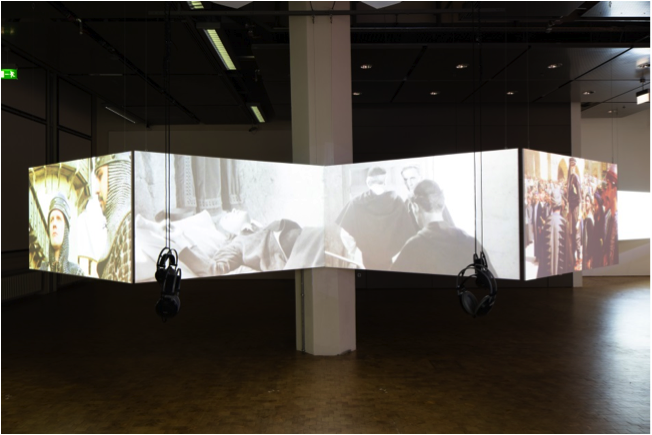 Mais l’avènement d’un nouveau rapport avec la terre nécessite encore une condition, exposée dans la procédure E (Secular at Last !). Cette avant-dernière section est certainement la plus énigmatique, la moins guidée, la plus ouverte à la réflexion. Son intention est de contribuer à séparer les sphères de la religion et de la politique, alors même qu’elles tendent à être confondues comme formes de souveraineté. Une installation conçue par Jean-Michel Frodon et Agnès Devictor explore ces croisements à travers seize extraits de treize films. Entre les panneaux suspendus où elles sont projetées, les images se répondent en échos. Comme il y a plusieurs dieux, il y a plusieurs rites, plusieurs églises, plusieurs bûchers. Chaque fois, un personnage salutaire se heurte à un pouvoir, une foule est prise à parti, une parole reconfigure un monde. Dans une autre œuvre de la même section, Obama’s Grace (Lorenza Mondada, Nicolle Bussien, Sara Keel, Hanna Svensson et Nynke van Schepen, 2016), Barack Obama est filmé dans une cérémonie méthodiste où il vient de prononcer un discours dénonçant l’injustice dont est victime la communauté afro-américaine, s’interrompt un instant, et entonne un hymne à la grâce de Dieu, dont la syntaxe est transcrite dans les moindres détails sur un autre écran. Une troisième vidéo, Gnade üben (2016) de Lisa Bergmann et Alina Schmuch, suit le parcours de jeunes pasteurs, hommes et femmes, à travers l’apprentissage des formules et des gestes qui leur permettront d’exercer leur ministère.