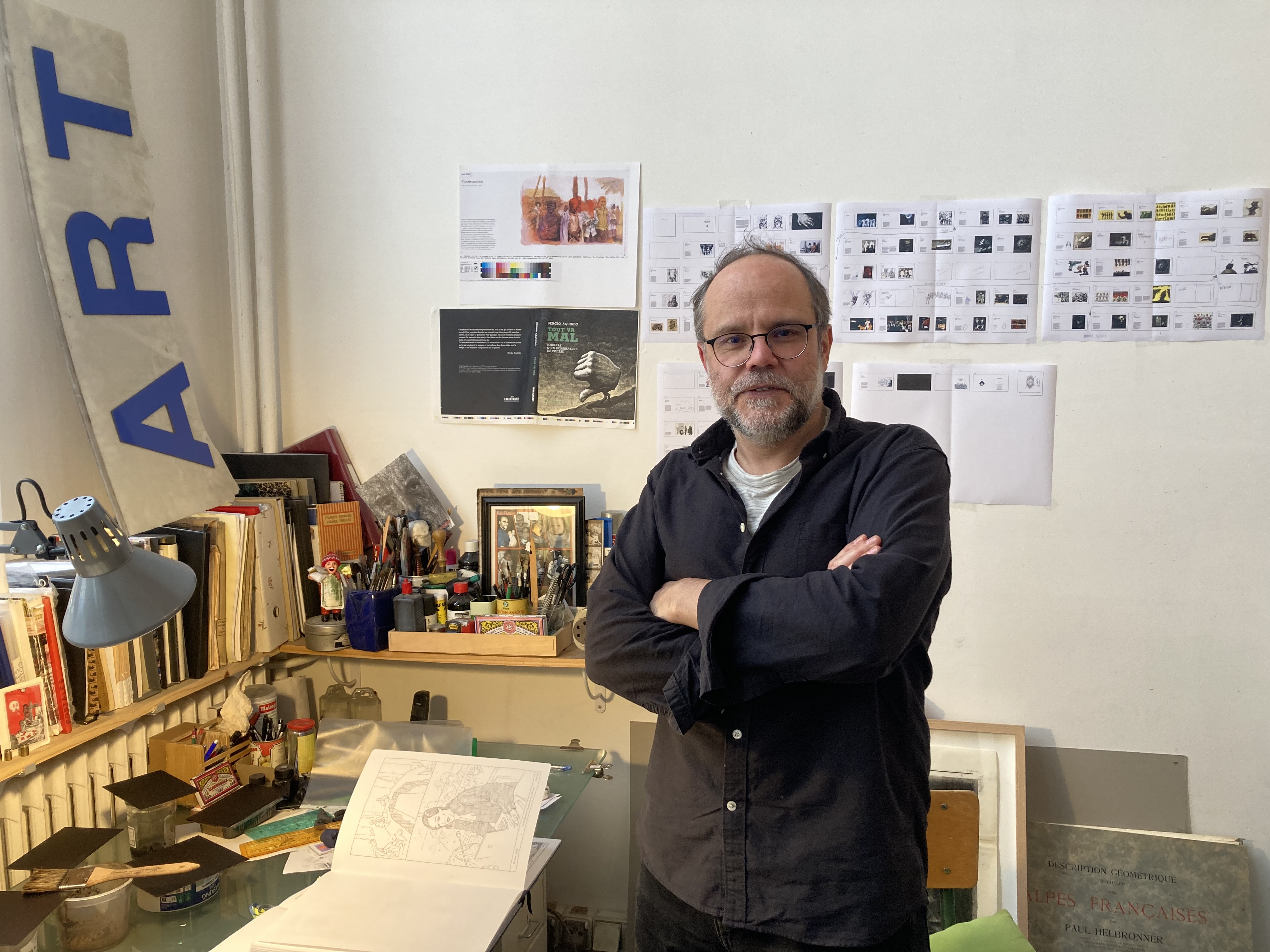 Artiste et auteur argentin né en 1974, Sergio Aquindo s’installe à Paris en 2001. Depuis 2003, il dessine pour Le Monde ; le livre Tout va mal, journal d’un dessinateur de presse (Rackham, mars 2025), réunit 200 dessins publiés essentiellement dans Le Monde. Il a suivi le procès des attentats du Bataclan, et suit en ce moment le procès Le Scouarnec toujours pour Le Monde.