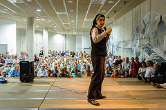 Dans un tel contexte, les slogans des Indignés ont gagné en actualité : obtenir une démocratie réelle (« Democracia real ya ») en dénonçant les apories du système représentatif (« No nos représentan ») et les mécanismes qui ont provoqué la crise (« Esto no es nuestra crisis »). Différentes « marées citoyennes » ont relayé ces demandes en les appliquant à des luttes sectorielles bien précises. Défendant la santé publique, le système éducatif ou les personnes expulsées de leur logement, elles ont fini par confluer en mars 2014 en une impressionnante manifestation d’un million de personnes à Madrid [7], lors de laquelle chacun de ces mouvements d’anonymes défilait sous sa couleur : blanc pour la santé, vert ou jaune selon les régions pour l’éducation et pour le logement, bleu pour la défense de l’eau comme ressource publique, violet pour les « émigrés forcés », etc. Les Yayoflautas (les « papis joueurs de flûte ») portaient quant à eux comme d’habitude leur gilet jaune fluorescent. Menacés par la baisse de leur retraite, ces militants du troisième âge précarisé ont retourné le cliché lancé par Esperanza Aguirre, la Présidente conservatrice de la Communauté de Madrid, selon lequel les Indignés se réduisaient à quelques jeunes excités « perroflautas » (punks à chien) [8]. Témoignant au contraire par leur présence de la dimension « inter-âges » des marées sociales, les yayoflautas ont réactivé pour beaucoup d’entre eux les souvenirs des luttes anti-franquistes tout en reprenant à leur compte l’humour du 15M [9]. Ils ont utilisé conjointement d’anciens répertoires d’action (grève ou manifestation) et des pratiques nouvelles de happening politique rodées par les mouvements altermondialistes [10].