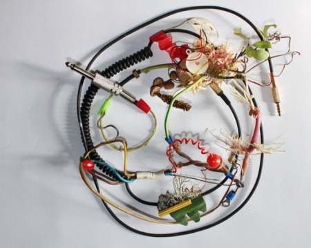 Nicolas Collins is a Professor in the Department of Sound at the School of the Art Institute of Chicago. Influenced by Alvin Lucier, David Tudor and punk culture, his work is at the intersection of experimental music, computer music, and sound art. During his career, he invented numerous musical devices by hijacking or altering existing technologies: CD players that play the sound produced by a disc when it is paused (Broken Light, 1991); attached to a trombone, a signal processing system that combines a digital reverb and a Commodore 64 motherboard (Tobabo Fonio, 1986); or discarded electronic circuits “reanimated” by probes that interact with other electronic components to create feedback (Salvage, 2008). He also wrote Handmade Electronic Music: The Art of Hardware Hacking (Routledge, 2009), an influential introduction to the world of musical hacking.