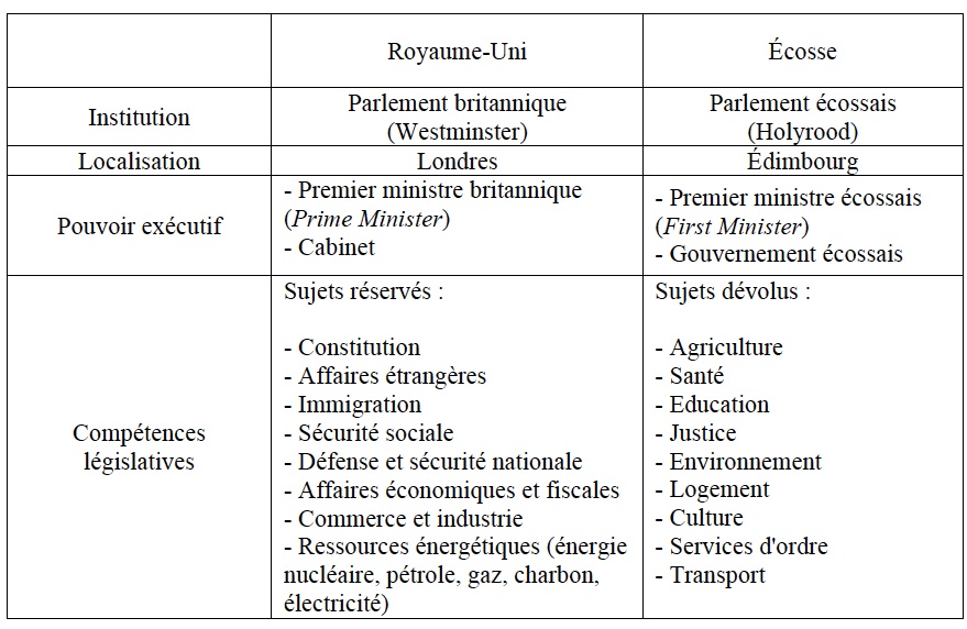 La dévolution législative en Écosse : un système de gouvernement à deux niveaux