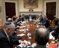 Le sursaut des organisations juives conservatrices n’est pourtant pas l’unique raison du très probable échec de la politique israélienne d’Obama. Celle-ci présente en effet de réelles limites de conception et de mise en œuvre. La Maison Blanche n’a pas su prévoir l’intensité de la résistance de Netanyahou. Elle a sous-estimé les contraintes qu’imposaient au Premier ministre les partis de droite présents dans son gouvernement, après l’élection de la Knesset la plus conservatrice de l’histoire israélienne. L’insistance de Washington a renforcé la position intérieure de Netanyahou [26] et a contribué à détériorer l’image des États-Unis en Israël [27]. Par ailleurs, l’exercice au grand jour de la pression américaine et la révélation publique de l’ensemble des gestes attendus d’Israël ont braqué les Israéliens. Si l’administration a marqué des points dans l’opinion arabe, elle s’est liée les mains pour les négociations à venir. Les pays arabes ont durci leurs positions : ils maintiennent qu’ils n’accepteront de faire aucun des gestes attendus d’eux tant que les Israéliens ne cèderont pas sur le gel total. Les marges de manœuvre de la Maison Blanche sont donc extrêmement réduites. Au vu de l’impasse actuelle et de la réticence de l’administration américaine à proposer un véritable plan de paix aux deux parties, l’hypothèse d’un succès du réengagement américain dans le règlement du conflit, tout comme celle d’un rééquilibrage des relations entre les deux capitales sont très peu probables, en dépit du poids croissant des positions défendues par le lobby « pro-peace ».