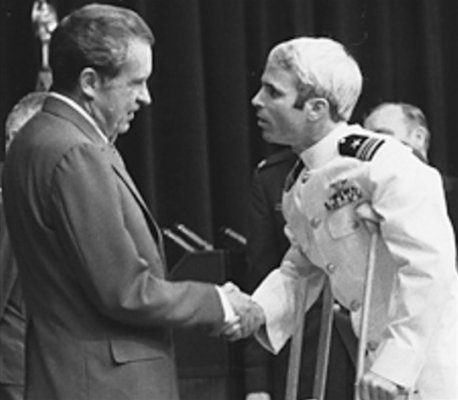 S’il refuse d’être libéré, il refuse aussi de rencontrer les membres d’associations hostiles à la guerre. Au pays en effet, toute une génération, dont une certaine Hillary Rodham, clame sa honte devant les exactions américaines au Vietnam. Ce n’est qu’après cinq ans et demi de captivité et après la signature de la paix qu’il rentre. Il serre devant le monde entier la main de Richard Nixon, l’homme que l’Amérique libérale vomit. Mais McCain ne peut critiquer des bombardements que son propre père a ordonnés. Quand à la nation en convulsion, elle accueille en héros cet homme brisé, qui symbolise par son retour cathartique la fin du cauchemar. Il faut plus d’un an au soldat pour parvenir à nouveau à plier les jambes mais il reste dans l’armée et reprend même ses opérations de pilote.