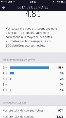 Système de notation des chauffeurs par les clients Uber (visible uniquement par les chauffeurs)