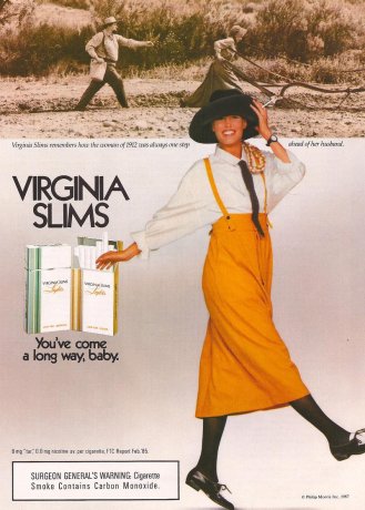 [7] Lancé en 1968, sur l’élan d’un mouvement social – le début de la « seconde vague » du mouvement féministe – la campagne publicitaire de Philip Morris prenait pour cible les jeunes femmes, en utilisant des images de l’émancipation et de la liberté des femmes, mais aussi des valeurs esthétiques mettant en avant l’élégance et la minceur.