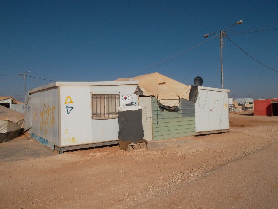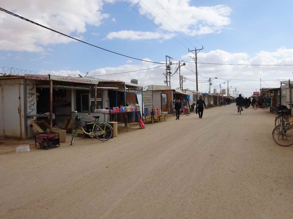 Véritable ville où se juxtaposent les préfabriqués et encore quelques tentes, cet espace concentre tous les paradoxes de la présence syrienne en Jordanie. Les organisations humanitaires y sont omniprésentes, symbole de la vulnérabilité d’une population exilée privée de ressources. À la différence des réfugiés irakiens, majoritairement issus des classes moyennes urbaines et qui s’étaient installés dans la capitale jordanienne, une large proportion des réfugiés syriens aujourd’hui sont originaires de régions rurales, et donc plus vulnérables. Dans le même temps, les réfugiés ont su développer sur ce territoire, malgré les contraintes du gouvernement humanitaire, un espace de vie sociale et économique. Des petits commerces et autres activités artisanales génératrices de maigres revenus parsèment aujourd’hui le camp. Les réfugiés ont tenté, autant que faire se peut, de recréer un semblant de vie normale dans un contexte de dénuement presque total et soumis à de fortes contraintes. Les réfugiés syriens ont effectivement un accès limité au marché du travail et ceux qui résident dans les camps doivent obtenir une autorisation, attribuée pour une durée déterminée, pour en sortir.