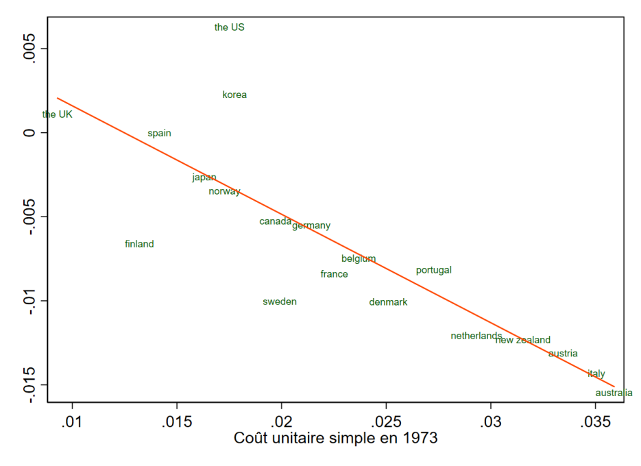 La convergence des coûts unitaires est importante tant d’un point de vue pratique que théorique. Ainsi, par le jeu de la concurrence et de la libre entrée, l’ouverture des marchés a pu permettre aux pays moins efficaces d’adopter les procédures et techniques ayant fonctionné ailleurs. Autrement dit, l’ouverture des marchés engendre un processus de sélection permettant d’accroître la productivité des acteurs financiers et facilitant la baisse des coûts d’intermédiation. Ce résultat fait écho aux travaux relatifs à l’intégration des marchés des capitaux au sens large. Ainsi, à défaut de s’appuyer sur la seule convergence des taux d’intérêt, l’analyse par le coût unitaire permet de généraliser l’idée d’intégration à l’ensemble du processus d’intermédiation du capital.