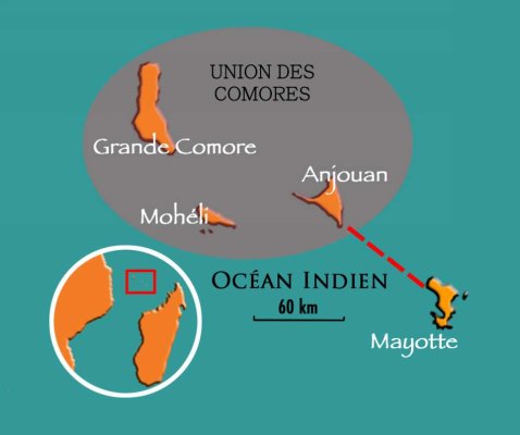 Ancienne société de plantation de l’Empire colonial français (1841-1946), Mayotte devient en 1946, avec les trois autres îles de l’archipel des Comores (Grande Comore, Anjouan et Mohéli) colonisées pour leur part au début du XXe siècle, un Territoire d’Outre-Mer (TOM). En 1974, les habitants de ce TOM sont appelés par référendum à décider de leur avenir politique : devenir un État indépendant ou rester français. La majorité des Comoriens votent alors pour l’indépendance. L’ONU prend acte de ce résultat et proclame, le 12 novembre 1975, l’Union des Comores comme pays indépendant composé de ses quatre îles, conformément à la règle de l’intangibilité des frontières qui régit les processus de décolonisation. La France, pour sa part, a une toute autre lecture des résultats du référendum. Si la majorité des Comoriens ont opté pour l’indépendance, le décompte des voix montre que Mayotte, avec 63% des suffrages exprimés, désire être maintenue dans le giron français. La France revendique alors l’appartenance de Mayotte au nom de l’autodétermination des peuples. En 1976, un nouveau référendum est organisé pour confirmer ou non cette volonté. Sous l’effet, d’une part, de l’action de lobbies créés et soutenus depuis Paris pour servir les intérêts militaires et géostratégiques de la présence française dans le canal du Mozambique et, d’autre part, de l’influence des notables locaux en quête de nouveaux pouvoirs suite au transfert de la capitale, en 1966, de Dzaoudzi à Mayotte vers Moroni en Grande Comore (Caminade, 2003), les résultats de ce second référendum sont sans appel : 99,4% des Mahorais votent pour le rattachement de leur île à la France. Celle-ci prend acte de ce vote en conférant à Mayotte le statut de collectivité territoriale de la République française, ce que ne manquera pas de dénoncer l’ONU pendant vingt ans, en vain.