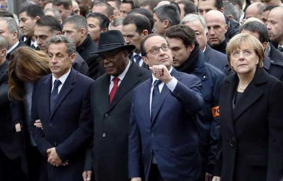 Il s’agit bien d’une forme de protestation, mais au cours de laquelle il est davantage question de faire nombre que d’obtenir satisfaction sur des revendications peu explicitées : les slogans étaient pour l’essentiel absents (peu de mots scandés en commun, absence de « mots d’ordre », beaucoup de marcheurs portant une pancarte explicitant le sens de leur présence). Il s’agit aussi en partie d’une « fête de souveraineté » (Corbin, 1994) en raison de la présence (même contestée) des gouvernants sur les lieux de la manifestation et de la participation de l’État à la production de cet événement. L’État est intervenu par la mise en place d’un dispositif policier d’une ampleur rare tout en contribuant à l’effort de mobilisation [4]. Néanmoins la marche ne célébrait pas des personnalités étatiques dans le cadre d’une cérémonie organisée par l’État.