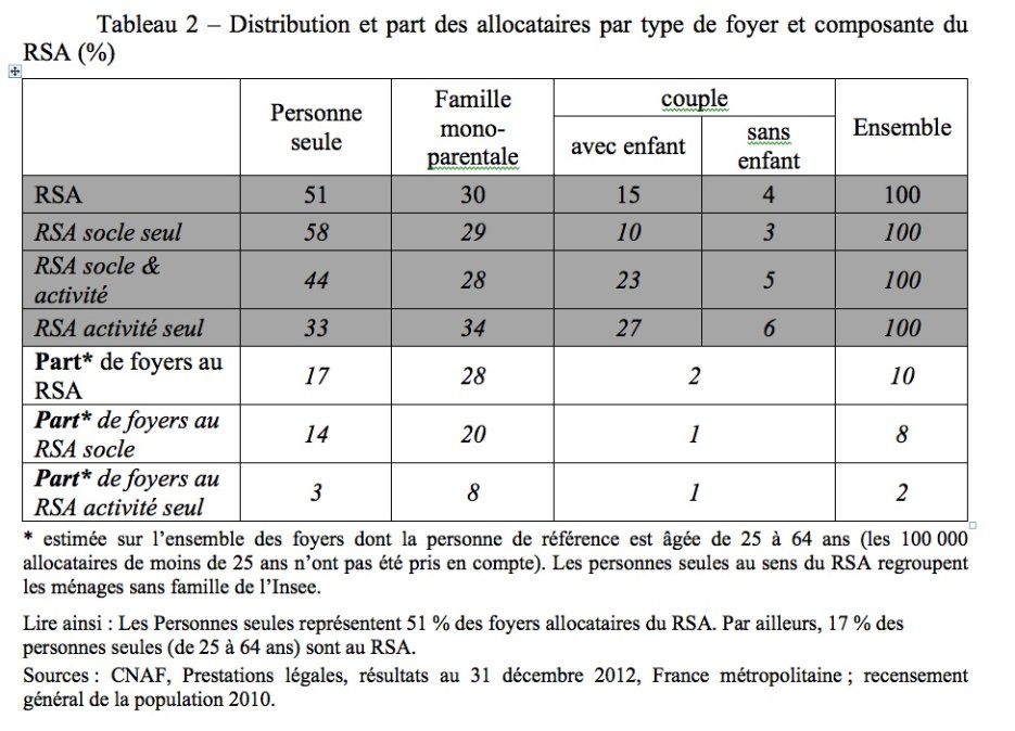 [5] En 2012, derniers chiffres connus, 10 milliards d’euros ont été payés au titre du RSA-socle et 1,5 au titre du RSA-activité.