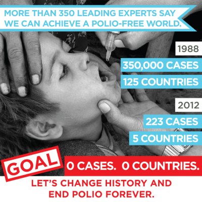 Le XXe siècle n’a pas déposé, vaincu, le virus de la polio en cadeau au XXIe siècle. Néanmoins, l’extraordinaire mobilisation financière — des États, des organisations internationales et transnationales, du public et du privé — ; humaine — la création d’un commando mondial de plusieurs millions de travailleurs communautaires —, et la mise en place d’une ingénierie socio-sanitaire très efficace — notamment l’organisation de journées nationales de vaccination contre la poliomyélite, de « mop-up campaigns » (campagnes de ratissage) menées en porte-à-porte, a permis en à peine plus de 10 ans de diminuer l’incidence annuelle de la maladie de façon spectaculaire : le nombre de cas notifiés est passé de 350 000 en 1988 à moins de 1000 au début des années 2000.