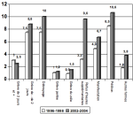 entre 1996-1998 et 2002-2004 (en % d’établissements)