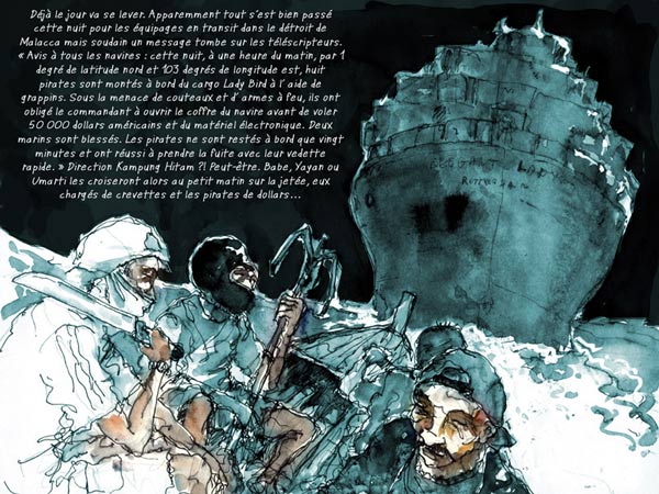 Une fois sur place parmi les pirates, l’idée, abondamment reprise dans la presse, d’une connexion avec les terroristes paraît improbable. Les pirates boivent de l’alcool durant le Ramadan et préfèrent les prostituées de leurs repaires aux vierges promises au paradis du jihadiste [22]. Comment de rigoristes musulmans pourraient fréquenter de tels impies ? Surtout, ces derniers n’auraient aucun intérêt à provoquer, en particulier à terre, des opérations répressives venues d’Occident ou d’ailleurs à la suite d’une attaque terroriste menée en mer avec leur soutien. De même, les pirates ne sont que très rarement connectés à de grandes mafias régionales. Aujourd’hui, Mr Pang – un parrain réputé au sud de Singapour – adopte un profil bas et se cache sur l’île de Batam. En Somalie, l’International Chamber of Shipping et quelques autres associations ont démenti l’idée d’attaques planifiées [23]. Les pirates n’agissent que par opportunisme en fonction des navires les plus vulnérables. Ils ne sont que des voyous qui tentent de s’en sortir. Dans le golfe d’Aden comme dans le détroit de Malacca, la pêche y est rendue de plus en plus difficile, à cause de la hausse du trafic et surtout des concurrences, souvent déloyales, de la part de marines étrangères. Dans un contexte de crise politique et/ou économique, les pirates s’en remettent parfois à l’immigration clandestine : 700 candidats malheureux seraient morts en 2008 au large de la Somalie contre un marin à cause de la piraterie [24]. Sur une plage des Riau, au sud du détroit de Malacca, des clandestins payaient en 2007 environ quarante euros leur billet vers la Malaisie. Toujours en Indonésie, d’autres se lancent dans le trafic de granit, de sable [25] ou de cigarettes, comme par exemple depuis Belakang Padang d’où part trois fois par semaine, de nuit, un sampan rempli de cartouches ; il lui faut seulement vingt-cinq minutes pour atteindre les rives de Singapour.