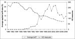 La forte baisse des tarifs douaniers des vingt dernières années ne signifie pas la fin des barrières commerciales : leur forme a juste évolué. Ainsi, la figure 1 présentée ci-dessous montre que la baisse des tarifs douaniers coïncide avec une hausse spectaculaire des mesures antidumping qui sont devenues le moyen le plus courant pour renforcer les barrières commerciales [1]. Alors que le nombre de ces mesures avait progressivement diminué depuis 2003, ce dernier, ainsi que le nombre d’enquêtes antidumping, a rapidement augmenté depuis le début de la crise financière et économique mondiale. Cette tendance semble se prolonger en 2009 [2].