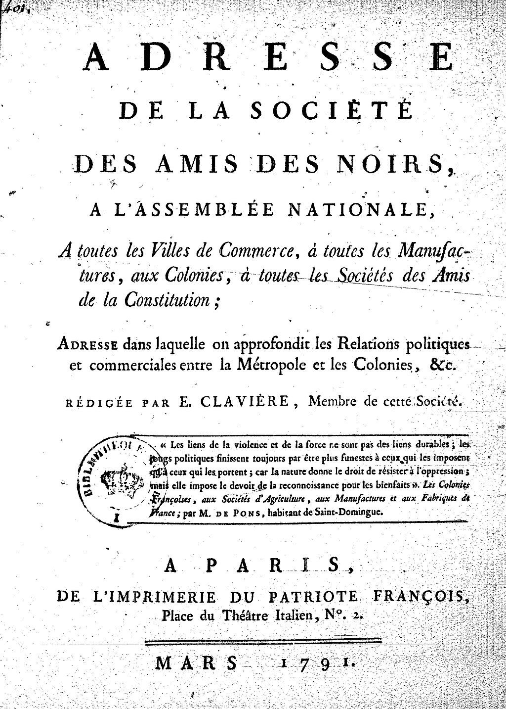 [2] C. L. R. James, Les Jacobins noirs. Toussaint Louverture et la Révolution de Saint-Domingue, n. éd., Paris, Amsterdam, 2017 ; Anna Julia Cooper, L’attitude de la France à l’égard de l’esclavage pendant la Révolution, Paris, Imprimerie de la Cour d’appel, 1925.