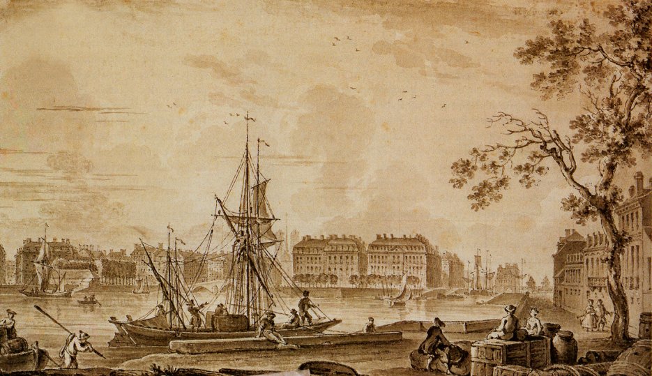 Vue du port de Nantes prise de l’île Gloriette au XVIIIe siècle, attribuée à Nicolas Ozanne