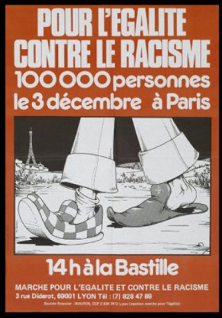 La confidentialité mémorielle dans laquelle la Marche avait jusqu’alors été tenue s’explique par un fait que l’on peut avoir tendance à oublier : si elle est un événement fondateur – au sens où elle a marqué des trajectoires biographiques – pour une génération de militants de l’immigration, le mouvement pro-immigré et certains journalistes, ce n’est certainement pas le cas pour l’ensemble de la population française, y compris pour les classes populaires et les familles immigrées. Bien que la manifestation parisienne ait rassemblé plus de cent mille personnes venues de toute la France, il n’en reste pas moins que les différentes étapes n’ont pas suscité la mobilisation escomptée par les marcheurs, notamment aux Minguettes. En effet, même dans ce quartier emblématique de la mobilisation, les marcheurs ont été fraîchement accueillis et parfois accusés de vouloir profiter individuellement de leurs relations avec les autorités politiques. La fragilité de la relation représentant/représenté entre les membres de SOS Avenir Minguettes [1] et les habitants du quartier est révélatrice de l’absence de structuration d’un mouvement aux faibles ressources idéologiques, financières et organisationnelles. Il faut donc relativiser l’importance de l’événement au moment même où il se produit, sans pour autant le réduire à un non-événement. Car la Marche constitue bel et bien une rupture dans l’histoire de l’immigration et des représentations nationales parce qu’elle signifie la fin du mythe du retour au pays d’origine, participe à rendre visible la réalité des quartiers populaires et favorise une prise de parole généralisée des enfants d’immigrés postcoloniaux.