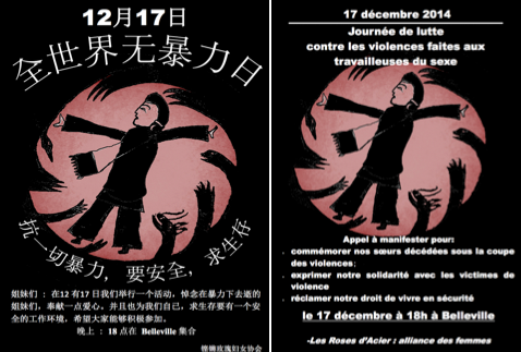 Les femmes chinoises sont à nouveau très mobilisées lors des manifestations suivantes et sont même coorganisatrices et en tête de la manifestation du 17 décembre 2014 pour la « Journée internationale de lutte contre les violences faites aux travailleurs et travailleuses du sexe ». Outre le fait qu’elles soient de nouvelles actrices dans la mobilisation autour des débats sur la prostitution, c’est aussi leur profil particulier qui attire l’attention des médias. Toujours soutenues par Médecins du Monde, mais aussi par le STRASS et d’autres associations, des élus et des riverains du quartier de Belleville, les femmes créent alors une association de travailleuses du sexe. Dans la rue et dans les médias, cette association a surtout été visible pour son plaidoyer au sujet du projet de loi, mais les motivations de départ sont moins connues et plus ambitieuses.