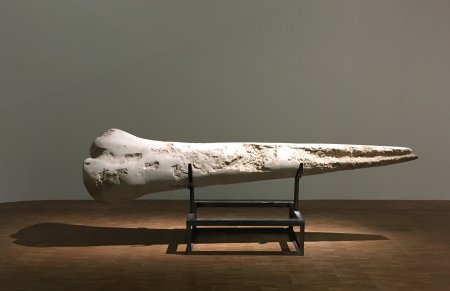En faisant coexister dans un musée d’art moderne artefacts préhistoriques et œuvres des XIXe-XXe siècles, elle crée des résonances – parfois jusqu’à l’indistinction des voix – et interroge le statut des objets : œuvres ou traces ? Elle montre aussi comment l’art peut s’inscrire dans les interstices laissés par la recherche historique démunie face à des temps aussi reculés. A travers une imposante scénographie, elle donne à voir et à sentir le fait que la découverte de la préhistoire, en ce qu’elle engage notre situation au sein d’une histoire de l’humanité, est nécessairement une expérience vertigineuse avant d’être une discipline scientifique.