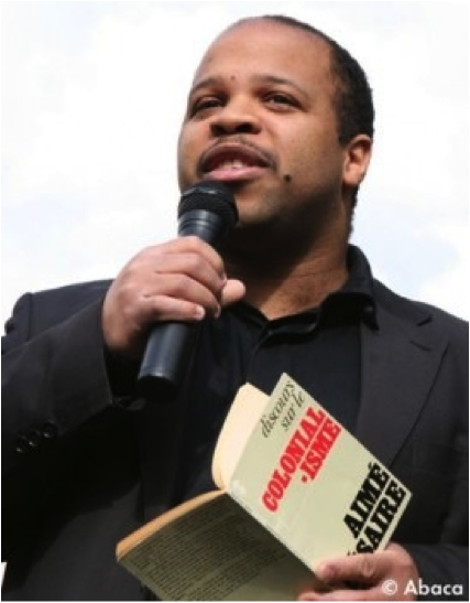 Le président du CRAN devient alors l’incarnation médiatique d’une cause. De 2013 à 2015, la page d’accueil de l’organisation s’ouvre sur un portrait en buste de Louis-Georges Tin. Un micro dans une main (symbole du porte-parole) et un livre ouvert dans l’autre : Discours sur le colonialisme d’Aimé Césaire. Seule personne affichée sur cette page, Tin revendique l’héritage anticolonial de l’intellectuel antillais afin de renforcer sa légitimité.