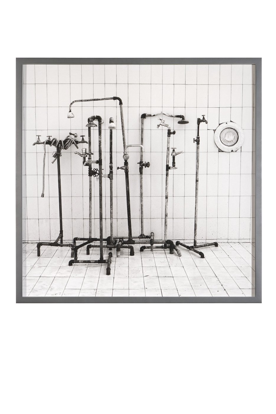 Le parcours proposé par Rugoff était si cohérent que les échos se faisaient non pas seulement d’une salle à l’autre, mais d’un site à l’autre : les œuvres que l’on voyait au MAC répondaient à celles que l’on a vues à la Sucrière, et inversement. Ainsi, les photographies d’installations de plomberie d’Yto Barrada (Plumber Assemblage, 2009, au MAC) résonnaient avec les fragments de fibres optiques et les câbles des deux pièces de Nina Canell à la Sucrière (Mid-Sentence et Thin Vowel (Stretched), réalisée en collaboration avec Robin Watkins), voire avec les éléments de tuyauterie et plomberie en tout genre que l’on retrouve fréquemment dans les dessins de Tatiana Trouvé (Intranquility, Remanence, Deployment, Les Désouvenus), eux-mêmes accrochés sur de grandes structures métalliques aux vagues allures de circuit.
