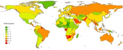 If we look at the exporting countries most affected by agricultural protectionism, the differences are even more marked: in 2004, Guyana bore an average tariff of 81.6% for its agricultural exports, followed by Fiji (56.3%), Armenia (52.7%), Saint Kitts and Nevis (50.8%) and Swaziland (50.6%). The seventy countries most severely punished by worldwide agricultural protectionism are all developing countries. When a country has a comparative advantage in meat, sugar, dairy products or tobacco it is not easy to specialise and benefit from the international division of labour.