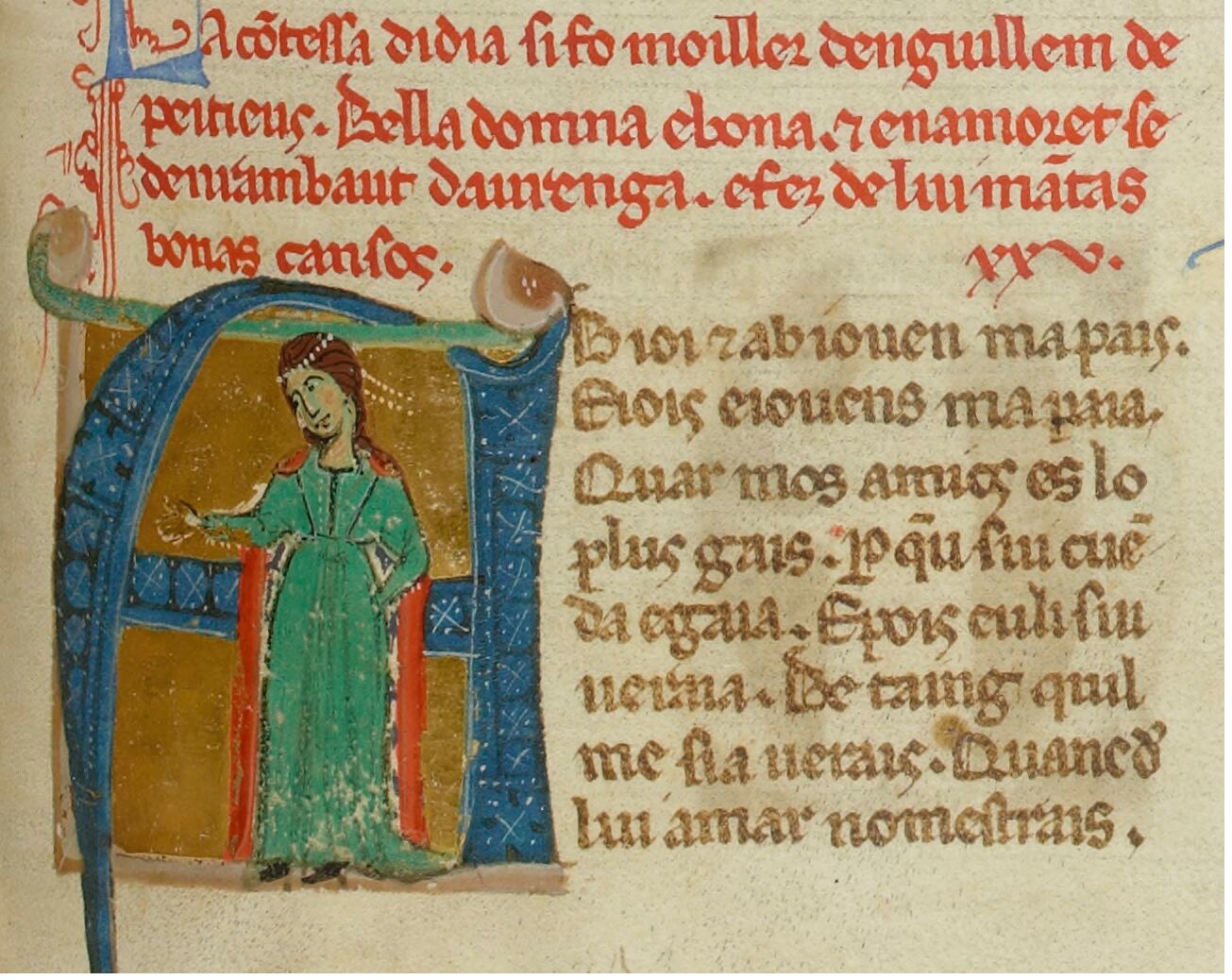 Comme chacun sait, le Moyen Âge est une période longue et protéiforme, où les évolutions et situations selon les catégories sociales sont légion. Pour orienter dans cette complexité, l’autrice organise les deux premières parties de son ouvrage sous la forme classique d’une galerie de portraits : les figures religieuses d’abord, avec la moniale, la béguine, la mystique, et la copiste, puis profanes, identifiées successivement comme trobairitz et trouveresse, ménestrelle, mécène. Loin d’essentialiser chacune d’entre elles, chaque partie met l’accent sur une biographie « exemplaire », ce qui permet de personnaliser et d’incarner le propos, et prend ensuite le temps de brosser le contexte ainsi qu’établir une large recension de sources et de témoignages où paraissent, même très fugacement, les traces d’activités féminines. Si à la lecture, cette profusion de personnalités peut paraitre déroutante par sa rapidité et les sauts temporels provoqués par ces énumérations, elle s’avère un moyen efficace de rendre compte de la richesse de la documentation compulsée et synthétisée, dont la plupart est assez peu connue, même des spécialistes.
