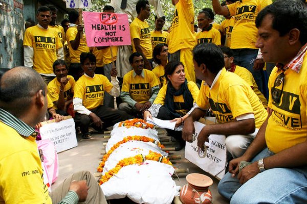 Face au monopole des firmes qui déclarent ne pas pouvoir réduire le prix des traitements et se montrent globalement peu intéressées par le marché que constituent les malades des pays du Sud ayant un faible pouvoir d’achat, les revendications pour l’accès aux médicaments dans les pays pauvres font émerger la question de la propriété intellectuelle et des brevets. En 1994, la création de l’Organisation mondiale du Commerce (OMC) a changé la donne dans ce domaine pour l’ensemble des pays membres de l’institution (aujourd’hui 159) en posant de nouvelles normes internationales avec la signature de l’accord sur les Aspects des droits de propriété intellectuelle qui touchent au commerce (ADPIC). Les défenseurs de l’accès aux médicaments s’inquiètent de l’impact que vont avoir ces règles, progressivement mises en œuvre dans les pays membres de l’OMC, et qui imposent des monopoles sur les traitements d’au moins 20 ans, là où l’existence de génériques et d’une concurrence entre producteurs peuvent permettre d’obtenir des prix bas. [1] Un certain nombre de groupes activistes de séropositifs et d’associations de lutte contre le sida développent une collaboration avec des ONG de défense de la santé (Health Action International, Médecins Sans Frontières) ou spécialisées sur la propriété intellectuelle (Consumer Project on Technology). Ces dernières partagent leur compréhension des réglementations sur la propriété intellectuelle et de leurs conséquences sur l’accès aux médicaments. La mobilisation est d’autant plus forte que les règles internationales sur la propriété intellectuelle, déjà renforcées avec l’OMC sont, à partir des années 2000, à nouveau durcies par le biais d’accords bilatéraux de libre-échange que les États-Unis signent avec un nombre croissant de pays du Sud.
