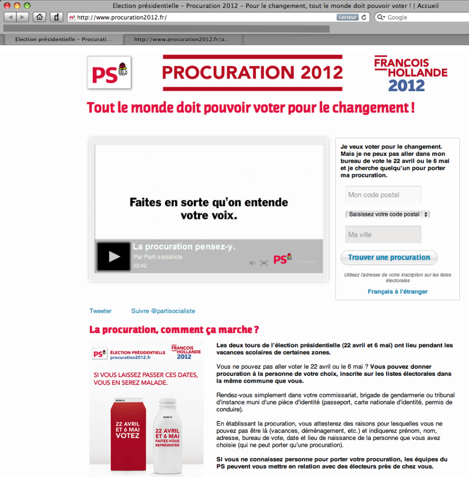 Internet permet évidemment de diminuer les coûts de l’intermédiation et de constituer une base d’électeurs politiquement proches. Les dispositifs permettent aussi de sécuriser le vote par procuration en confiant le mandat à un militant ou à un sympathisant, c’est à dire en extrayant la procuration des réseaux de confiance familiaux ou amicaux. En 2014, d’autres candidats (comme Nathalie Kosciusko-Morizet) consacrent une partie de leur site de campagne à un tel dispositif. Le site d’Anne Hidalgo cherche même à motiver, outre des mandant, des mandataires : « vous êtes disponible et impatient-e à l’idée de voter les 23 et 30 mars ? Votez deux fois ! » [12]